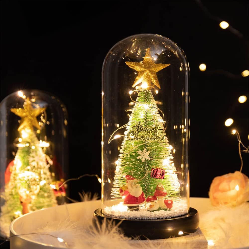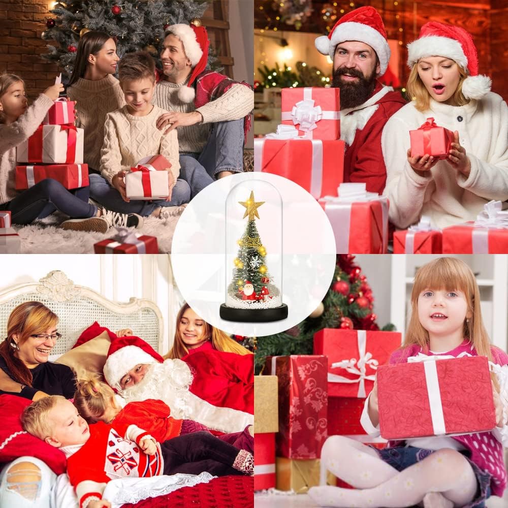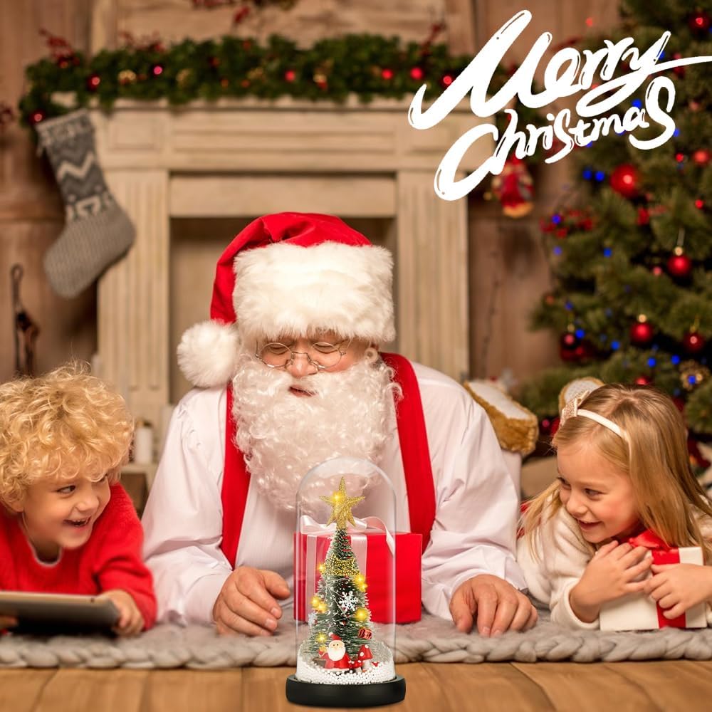 ✅ Elegantna Praznična Dekoracija – Božićna jelka u staklenoj kupoli sa zlatnom zvijezdom, snježnim detaljima i figuricom Djeda Mraza donosi sofisticirani dodir u svaki dom.