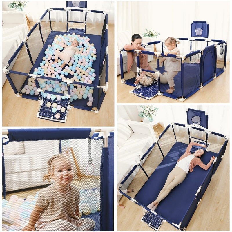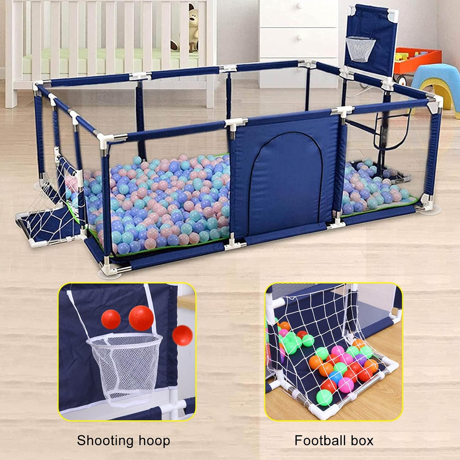 ✅ Višenamjenski Dizajn: Služi kao sigurna igraonica i zaštitna ograda, pružajući prostrano i interaktivno mjesto za igru, hodanje i puzanje, uz dodatak koša za bacanje lopte koji podstiče zabavu i roditeljsku interakciju.