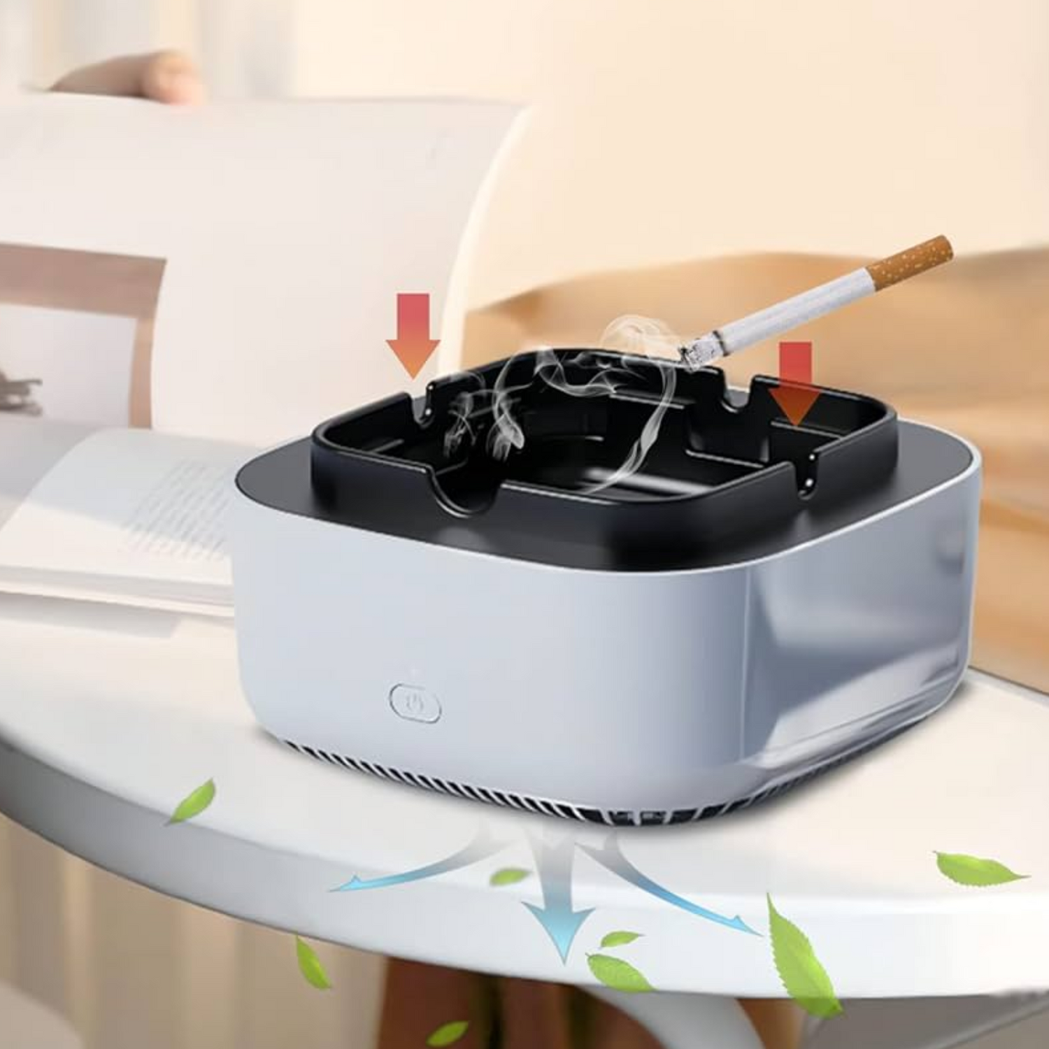 Pepeljara koristi visokokvalitetne filtre koji privlače i uklanjaju duvanski dim, nikotin i katran, vraćajući pročišćen zrak u prostoriju. Takođe, posjeduje aroma difuzer koji dodaje prijatne mirise pomoću aromatičnih tableta.