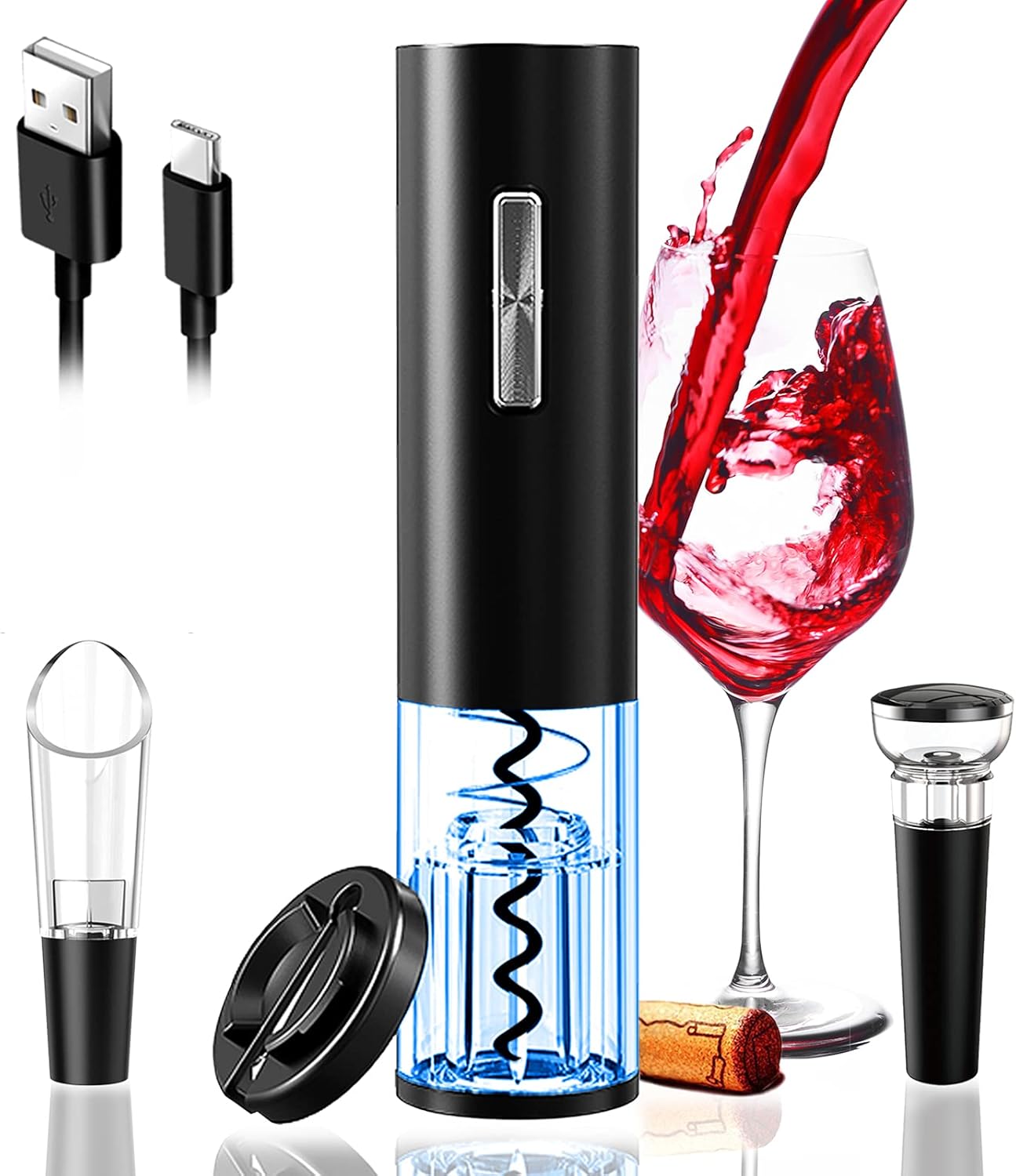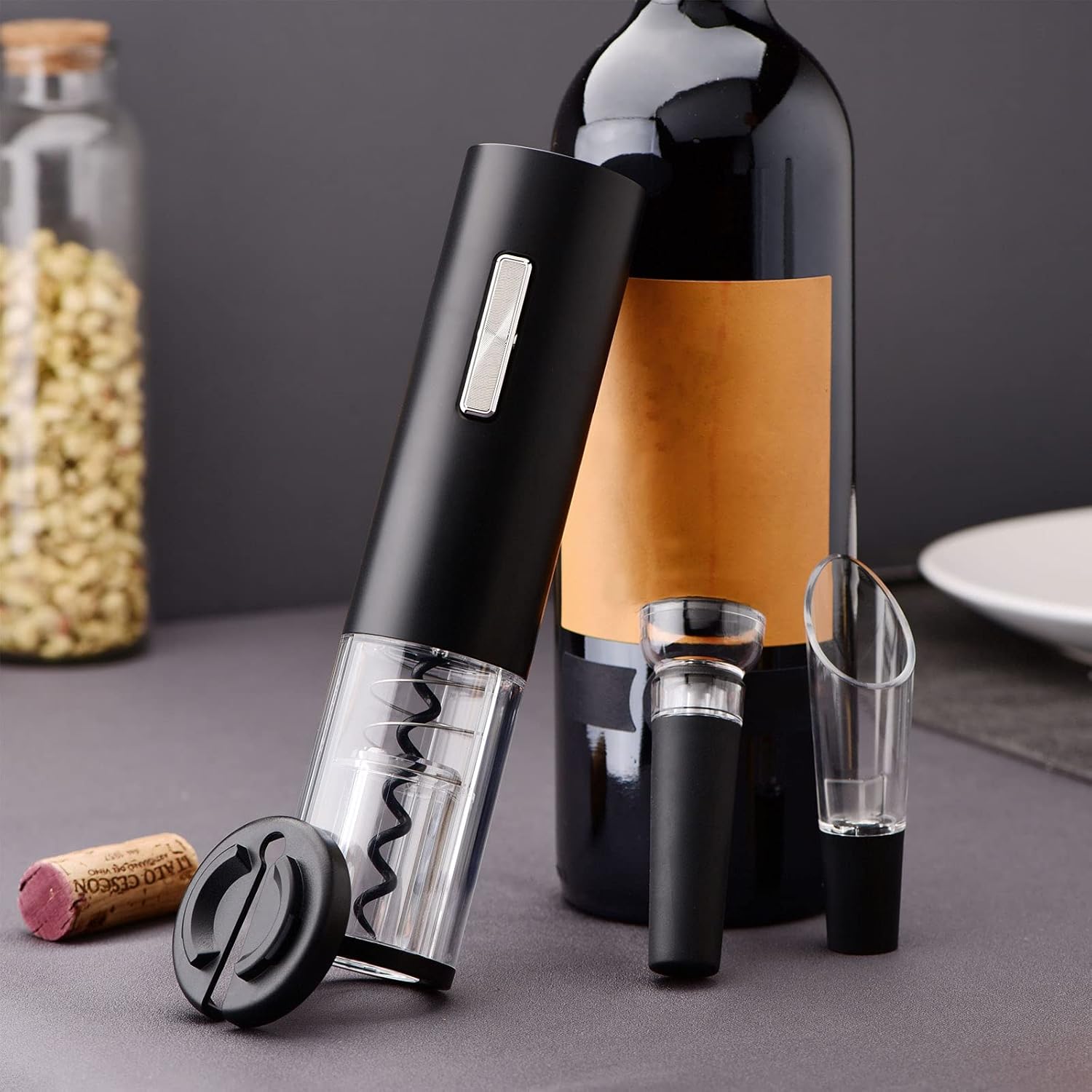 ✅ Komplet 4 u 1 – Uključuje električni otvarač, rezač folije, nastavak za sipanje vina i čep za flašu.