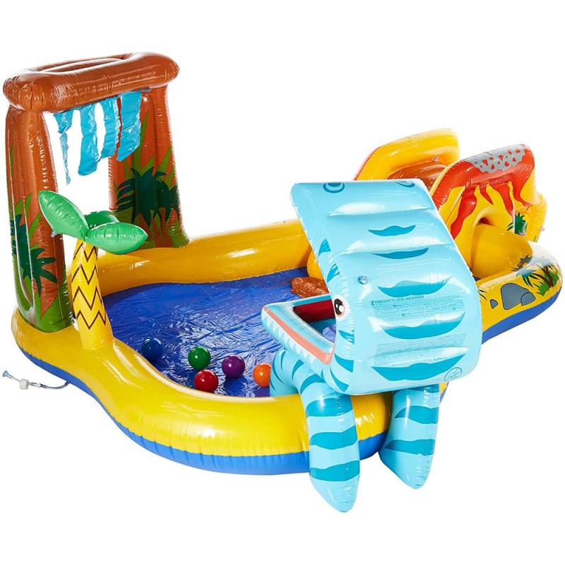 Uživajte u ljetnim danima uz tobogan, prskalice u obliku duge i palmice te šarene loptice za bezbrižnu igru mališana!