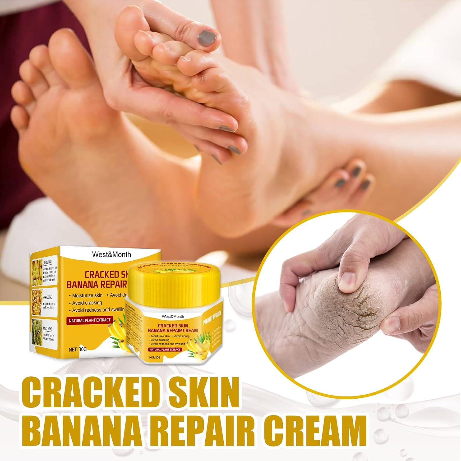 Obogaćena esencijom kore od banane, vitaminom E, parafinskim voskom i maslinovim uljem, ova krema deluje na debelu, napuklu kožu, smanjuje žuljeve i ljuštenje, te učinkovito ublažava suvu kožu koja se ljušti i krvari. 🌸