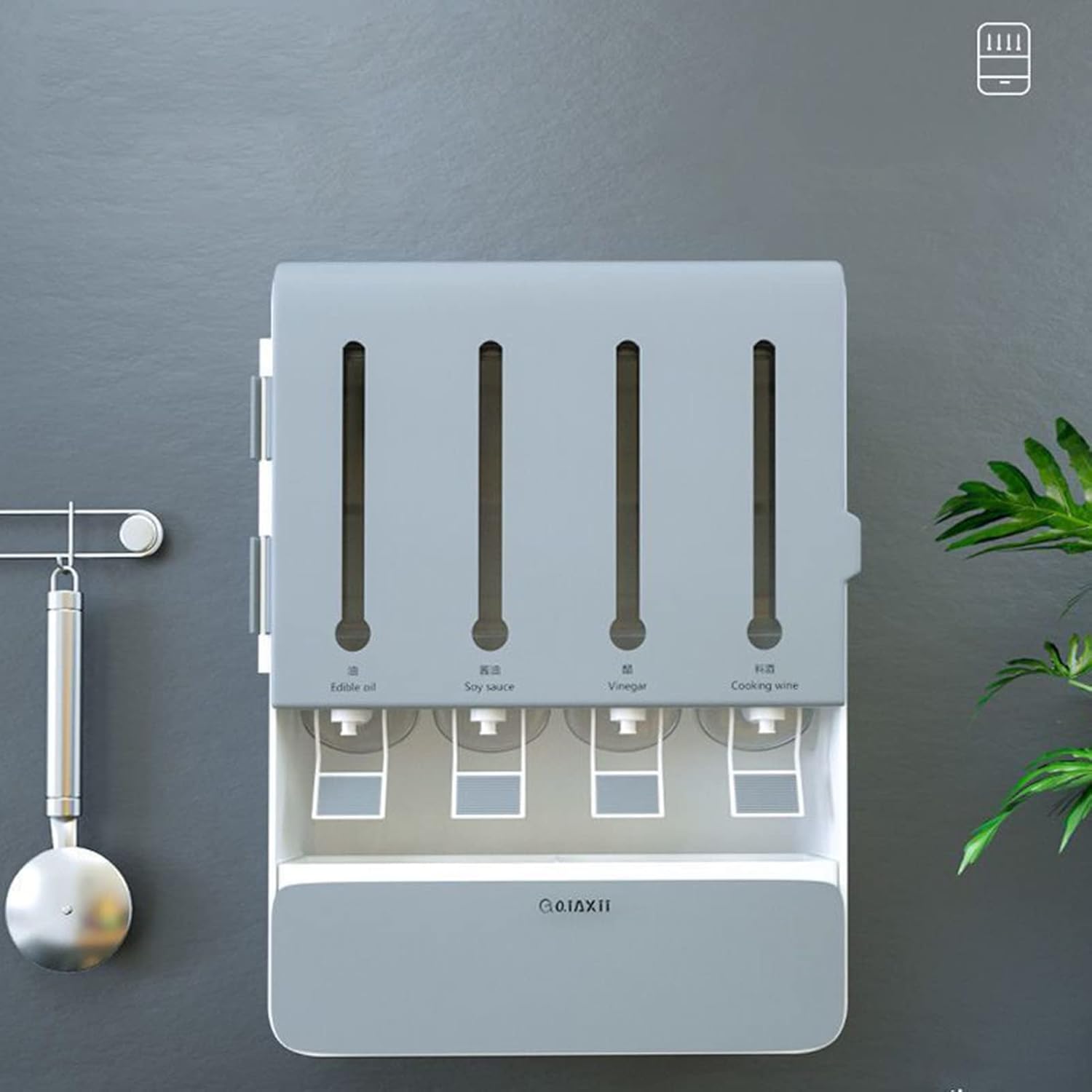 Kombinuje boce za tečne začine i posude za suhe začine, omogućavajući lako doziranje svega na jednom mjestu.