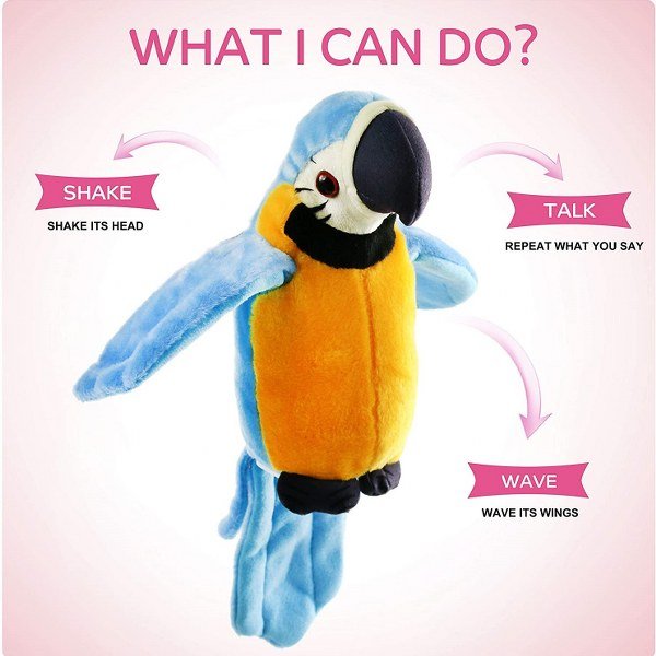 ✅ Visokokvalitetni Materijali: Izrađen od čvrste ABS plastike i mekog pliša, ovaj papagaj je izdržljiv i udoban za igru.