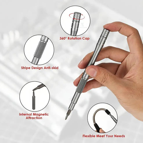 sadrži sve vrste nastavaka (ravni, križni, šesterokutni) i fleksibilnu osovinu za popravke različitih uređaja i predmeta.