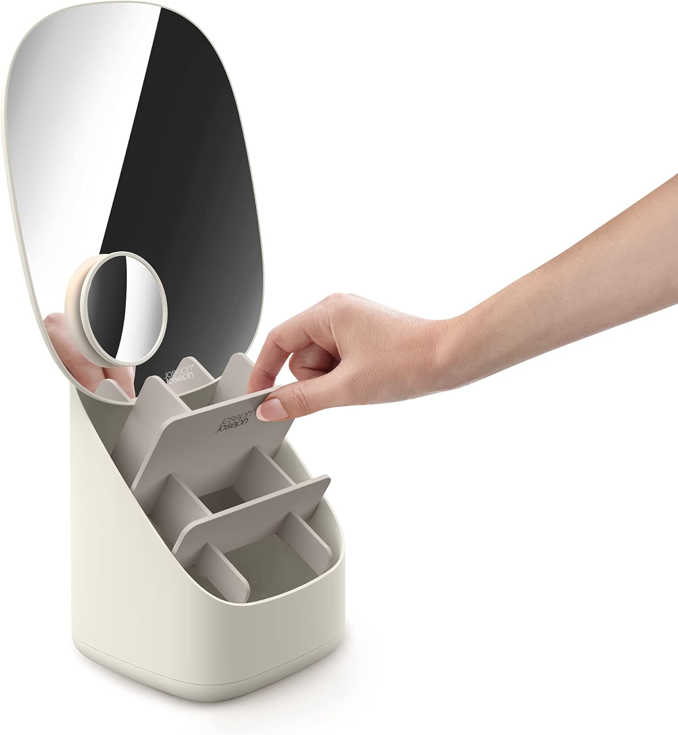 Ogledalo, povećanje i organizator za kozmetiku u jednom elegantnom i praktičnom dizajnu.