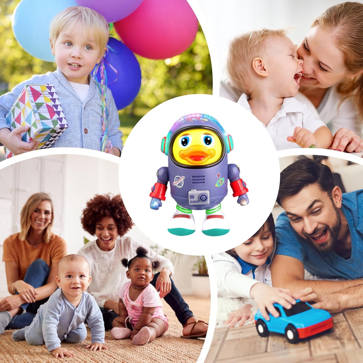 Svemirska patka pleše, pjeva i svijetli čim se uključi – djeca se momentalno zainteresuju, a osmijeh i smijeh su zagarantovani od prve sekunde.