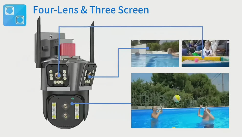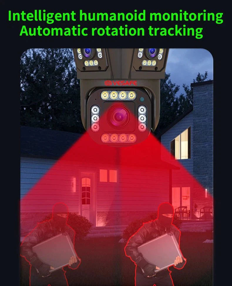 Otkrijte novo doba pametnog video nadzora. Trostruka CCTV PTZ IP Kamera 12MP pruža visoku preciznost nadzora, napredne AI funkcije i jednostavan pristup — sve preko vašeg mobilnog uređaja.