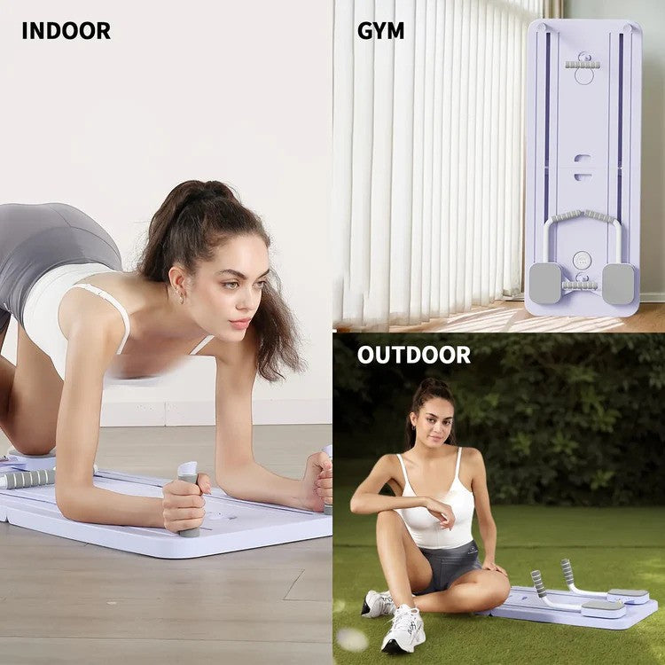 Zahvaljujući laganom i kompaktnom dizajnu, ovu fitness dasku lako možete sklopiti i spremiti nakon vježbanja. Savršena je za male prostore, a možete je ponijeti na putovanja i održavati svoju rutinu gdje god se nalazili. Bez obzira trenirate li u stanu, teretani ili na otvorenom, uvijek ćete imati sve potrebne rekvizite pri ruci.